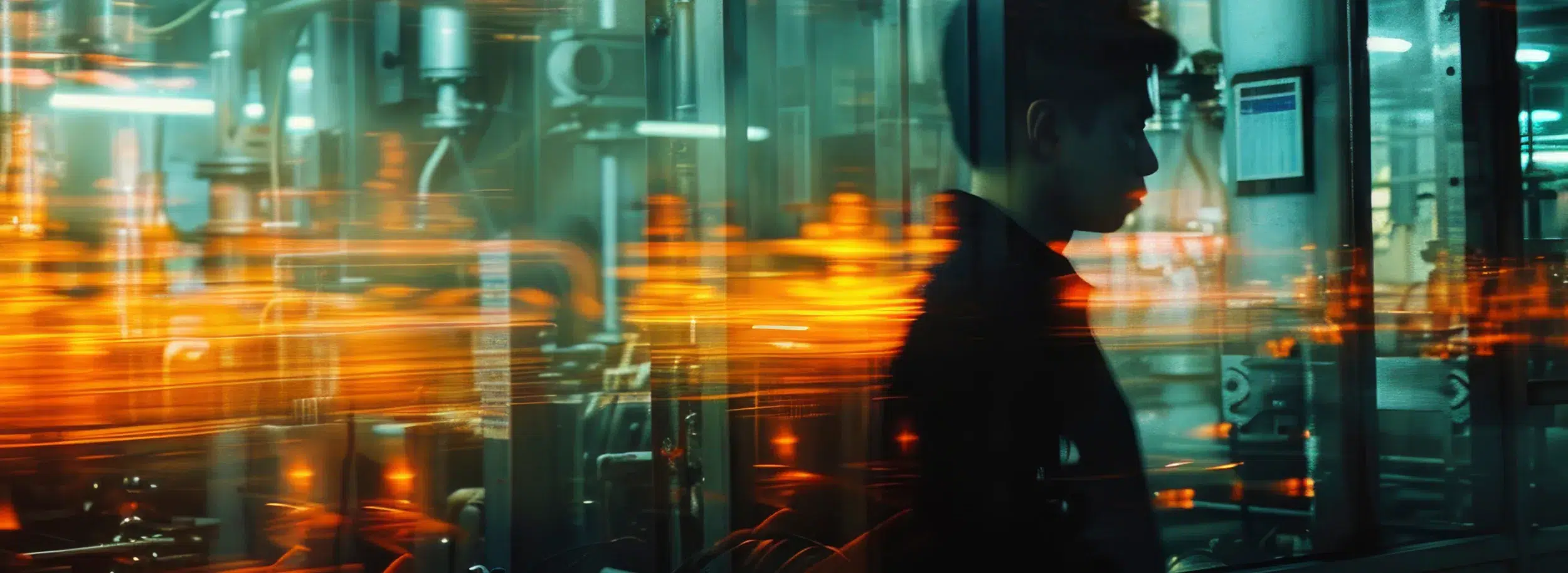 A man in a white shirt holding a smartphone, looking thoughtfully at colorful light bulb drawings floating in the air, symbolizing ideas or creativity.